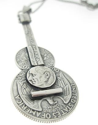 10セント硬貨を2枚使用して作ったギターモチーフのネックレスです。