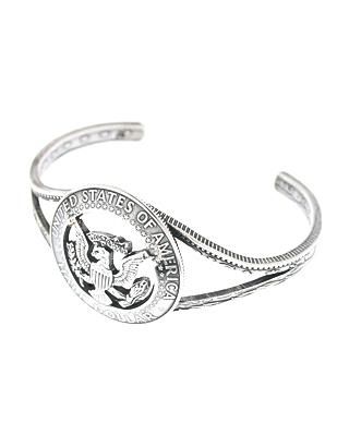 1ドル硬貨1枚をそのまま変形させ、バングルの形状にしています。